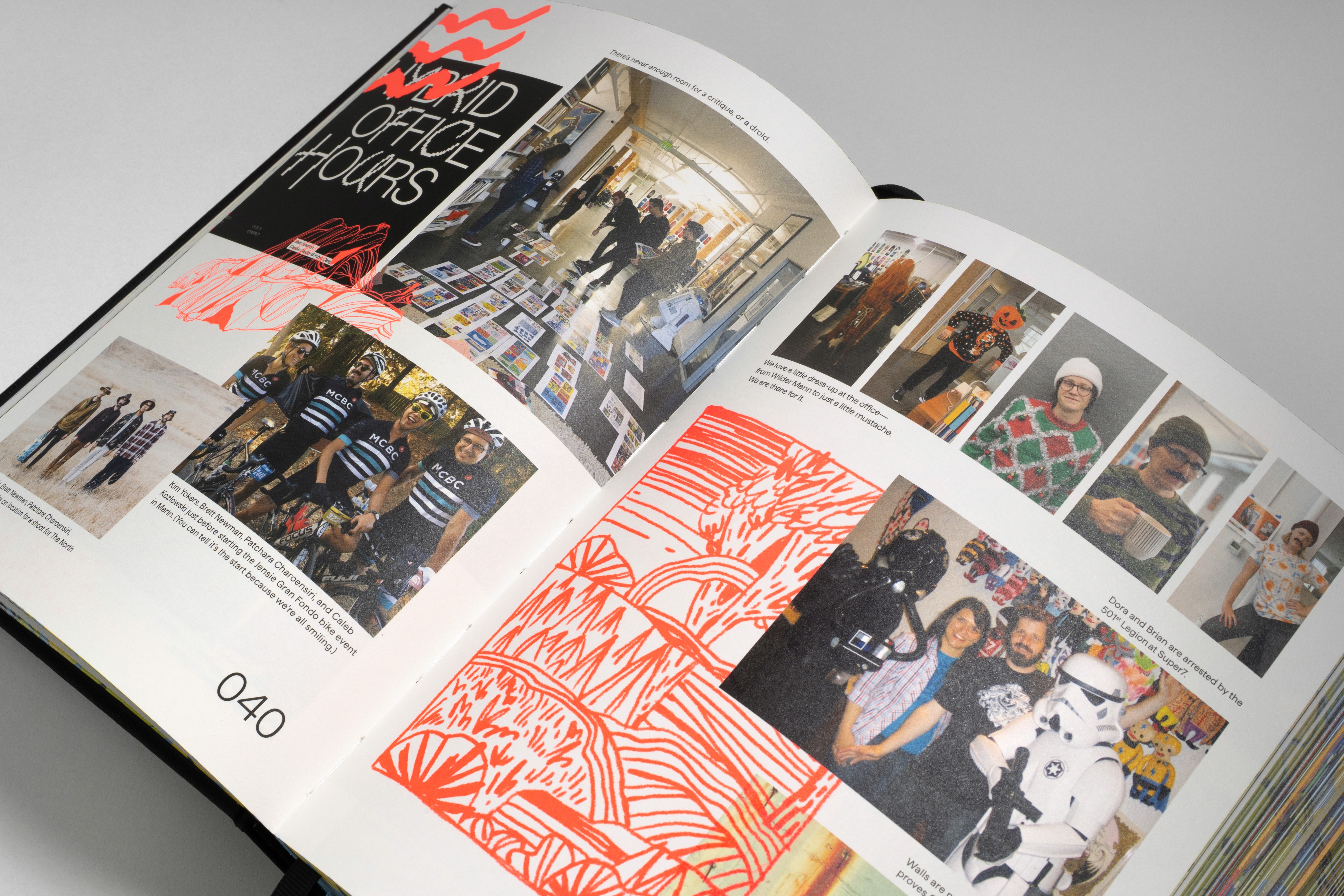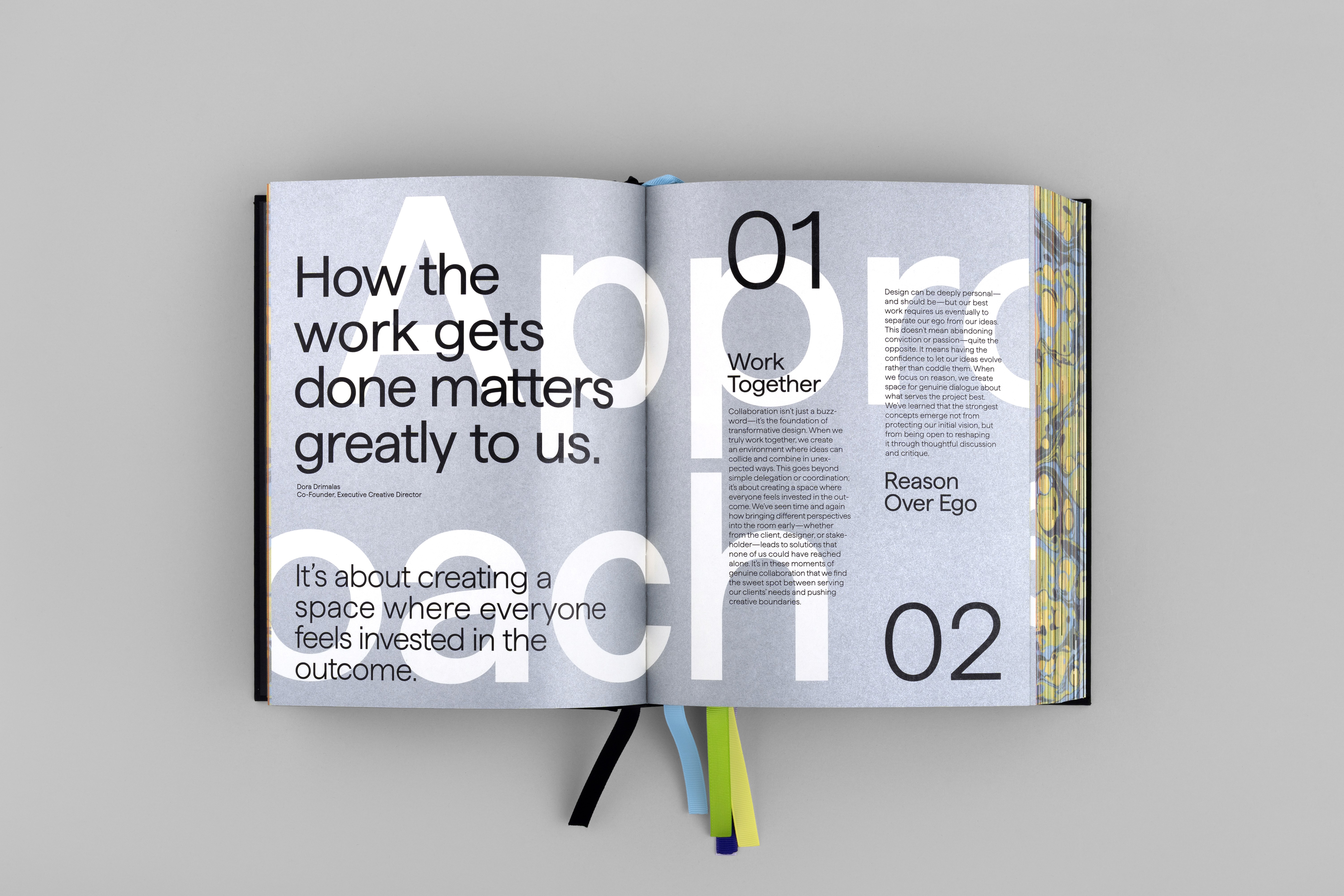 This multiple year long process was a labor of love, from design to writing to production oversight, the process was intentionally experimental: multiple paper stocks, six bookmarks, two randomly assigned cover colorways, and marbled edges that hint at the vibrancy held inside. The goal was to make something that feels alive, a reminder that curiosity isn't a side effect of design, it's the heart of it.