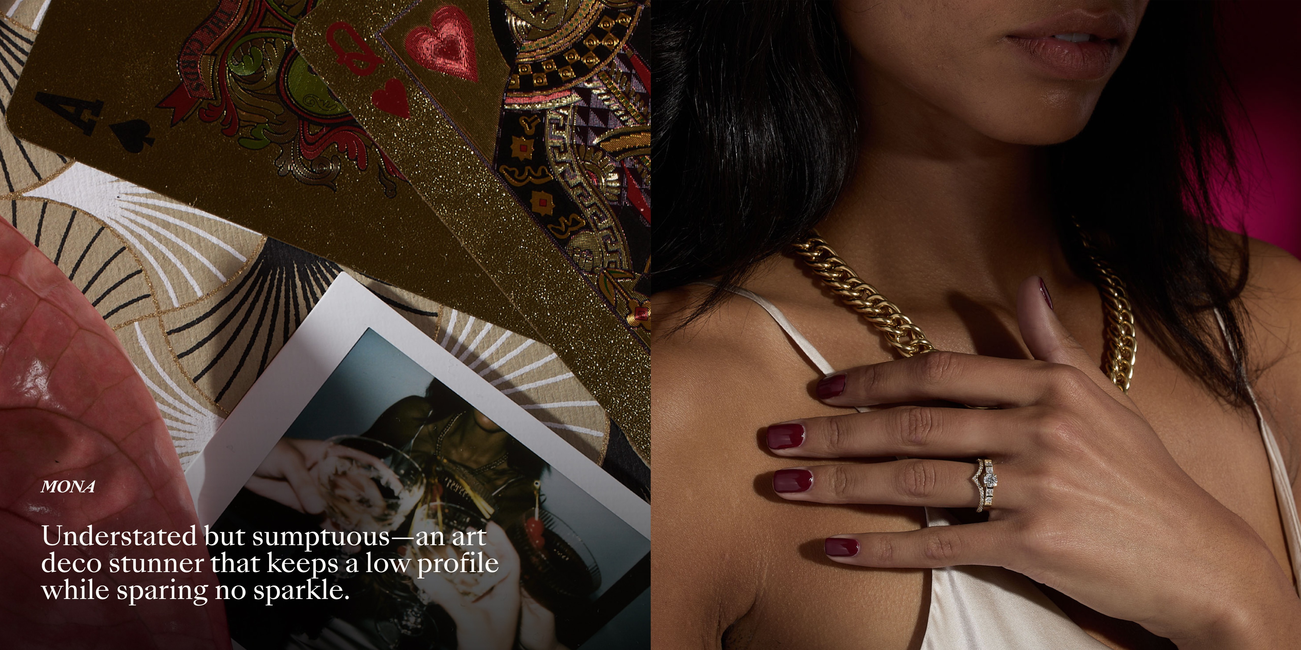 Eliette is a love letter to the engagement ring of the present—and the future. Eliette designs modern engagement rings with lab-grown diamonds sourced from labs that use renewable energy. We worked with the team at Eliette to create a brand that communicates their desire to make forward-thinking, sustainable design accessible to engaged people everywhere. The result creates a distinct personality for each family of rings, showing that different styles and personalities all have a place to celebrate.